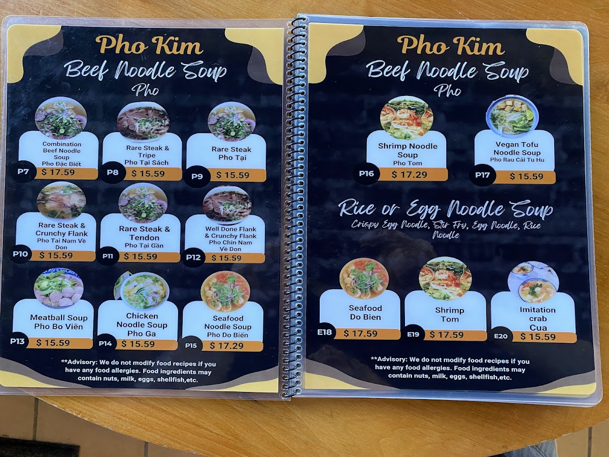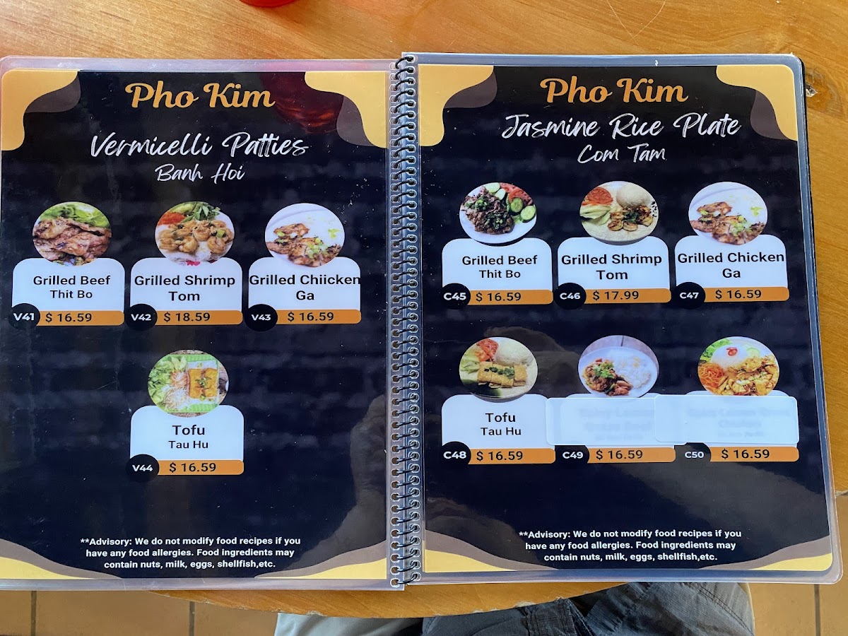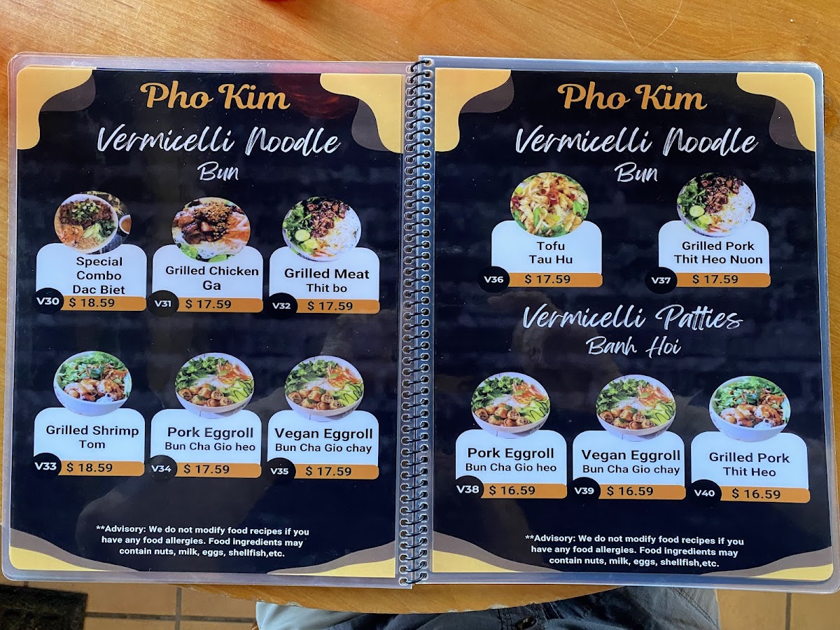 Pho Kim Menu
