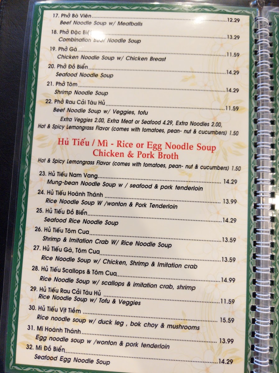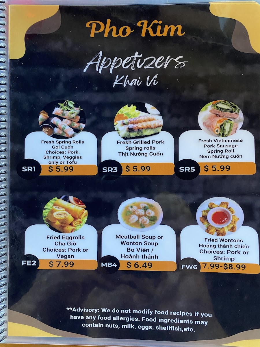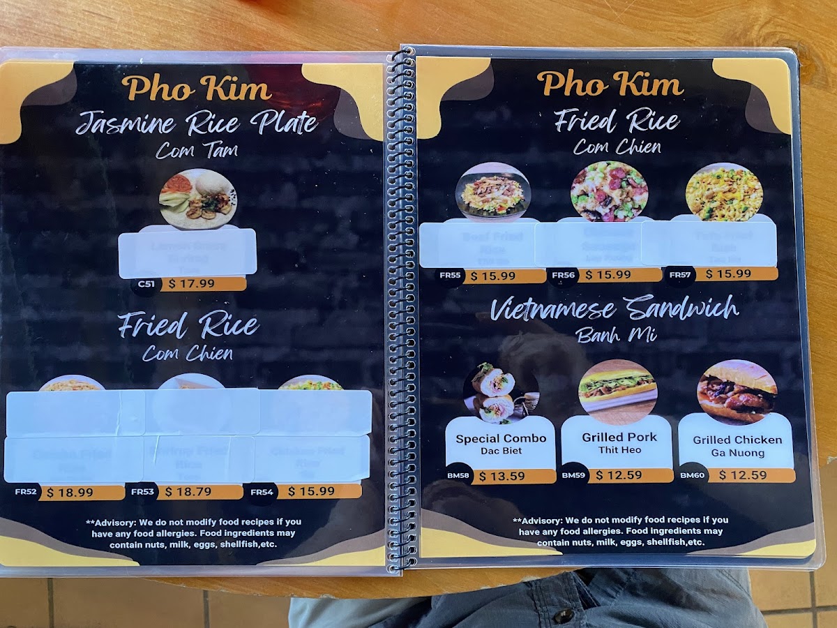 Pho Kim Menu