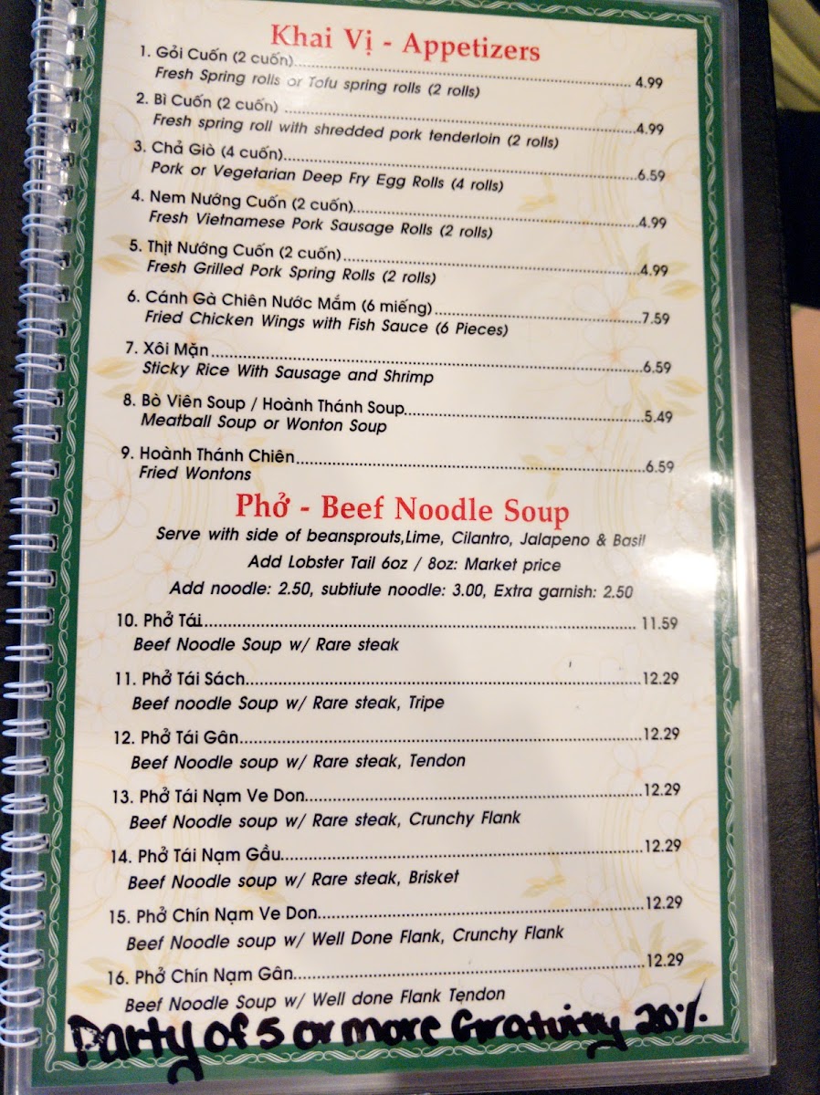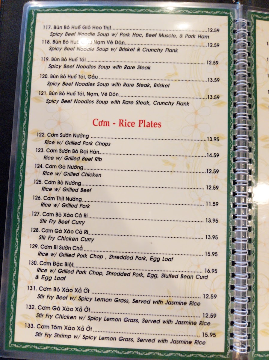 The menu at Pho Kim offers a variety of traditional Vietnamese dishes with a focus on pho, a popular Vietnamese noodle soup. The menu is organized into several key groups, providing options that include noodle soups, rice plates, and vermicelli dishes.
